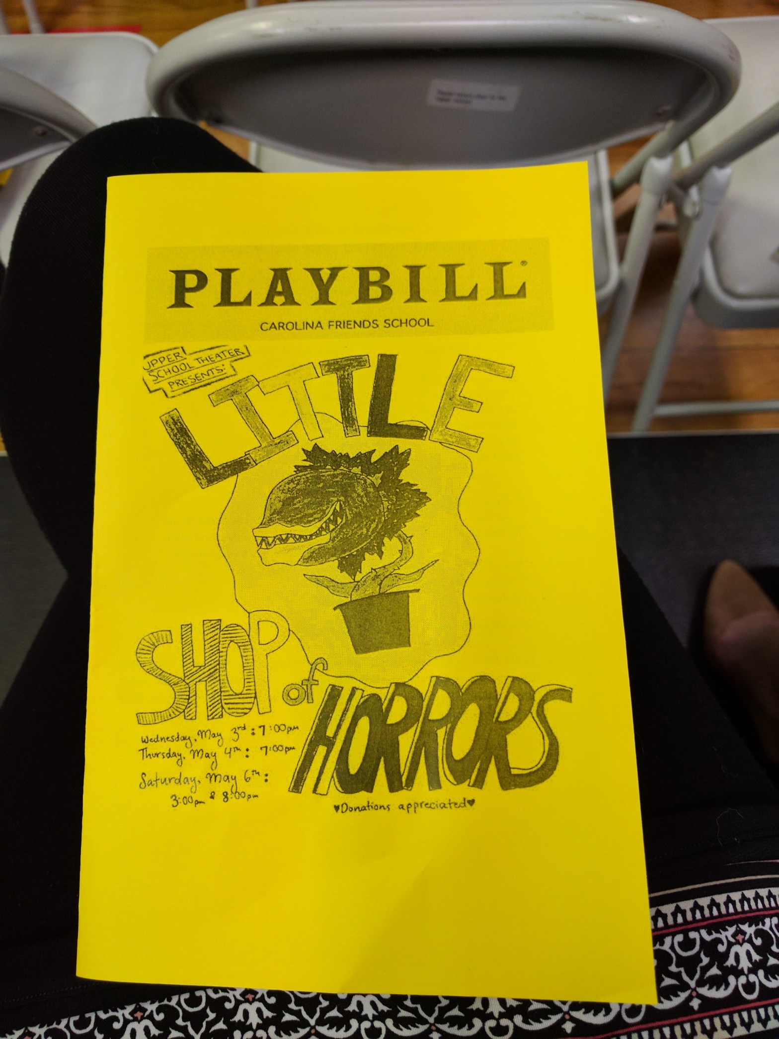 A Big Congratulations to Miss Gwyneth G. for her wonderful portrayal of Chiffon in Carolina Friend School’s “Little Shop of Horrors”. I was also happy to support Miss Lili, an alumni of my musical theater classes as she belted out an adorable performance as Audrey. A big additional kudos to Miss Lauren, another alumni for coming with me to support these spectacular ladies!