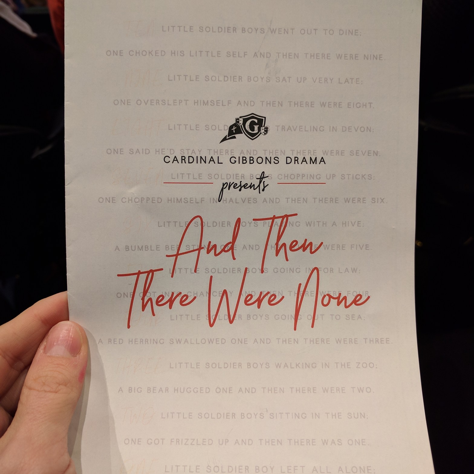 Congrats to Mr. Josh D. for his excellent portrayal of Philip Lombard in Cardinal Gibbon's "And Then There Were None". Additionally, Miss Anne T. was an adorable Hot Box Girl in "Guys & Dolls" for the Cary Players. I am so proud of you two!